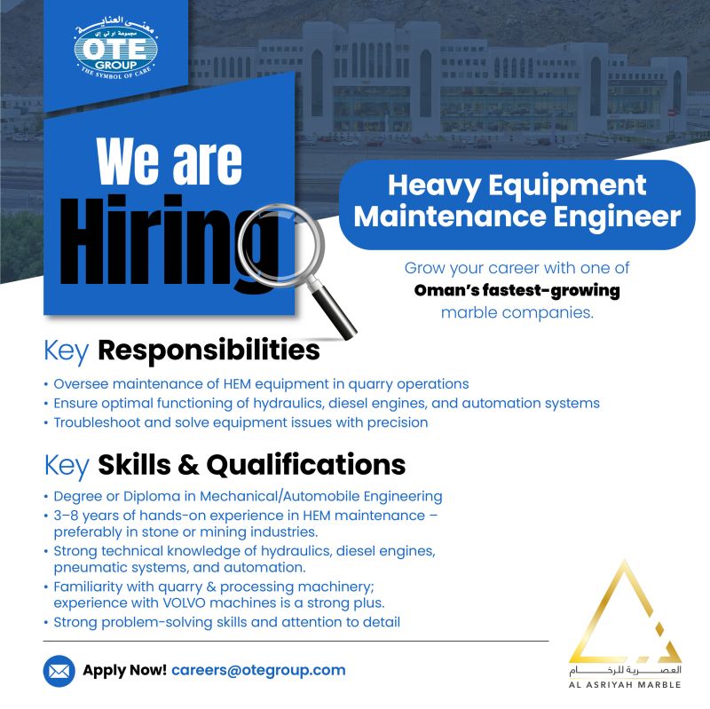 الشركة العصرية للرخام - وظيفة شاغرة ( مهندس صيانة المعدات الثقيلة )