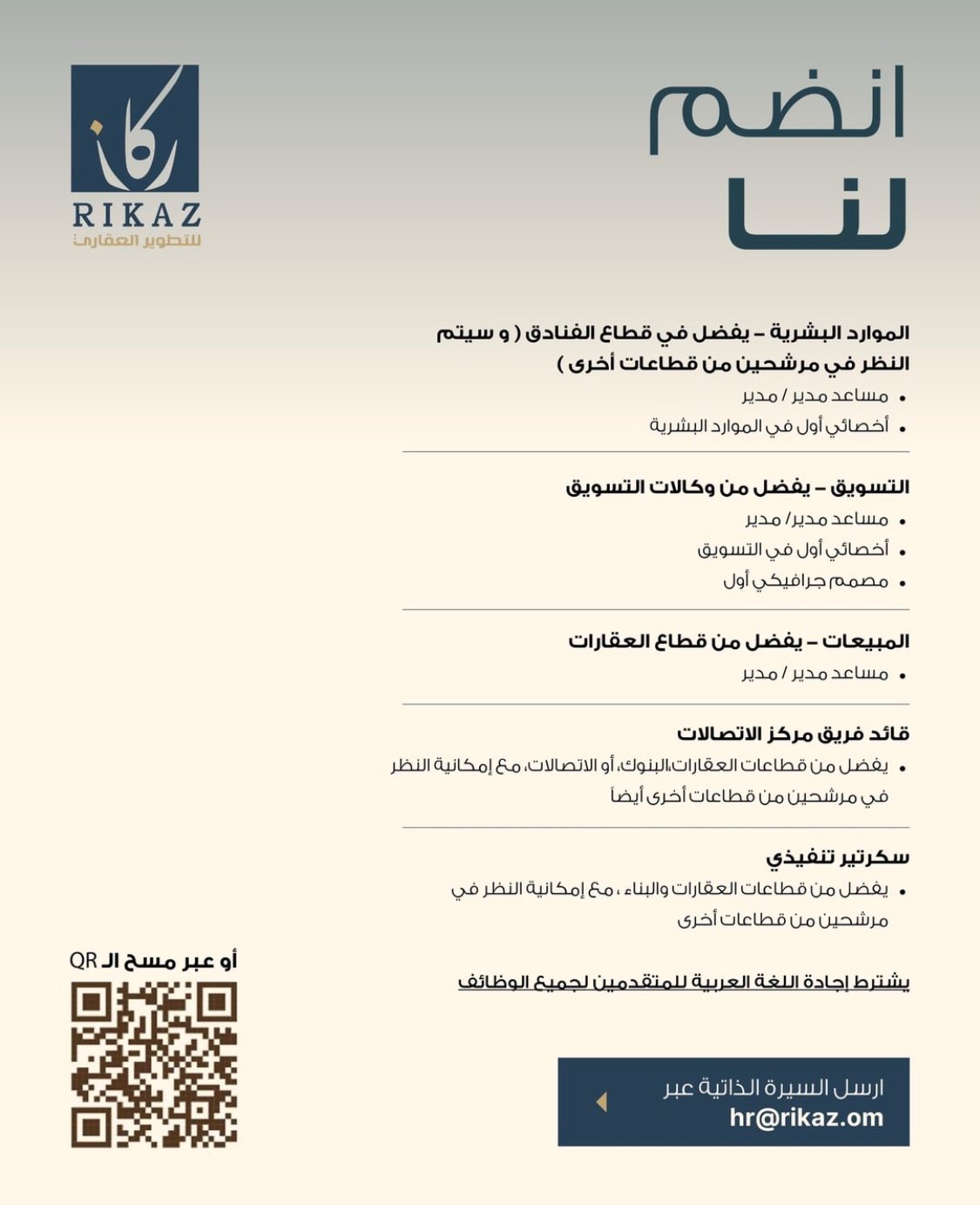شركة ركاز للتطوير العقاري في مسقط - فرص وظيفية جديدة