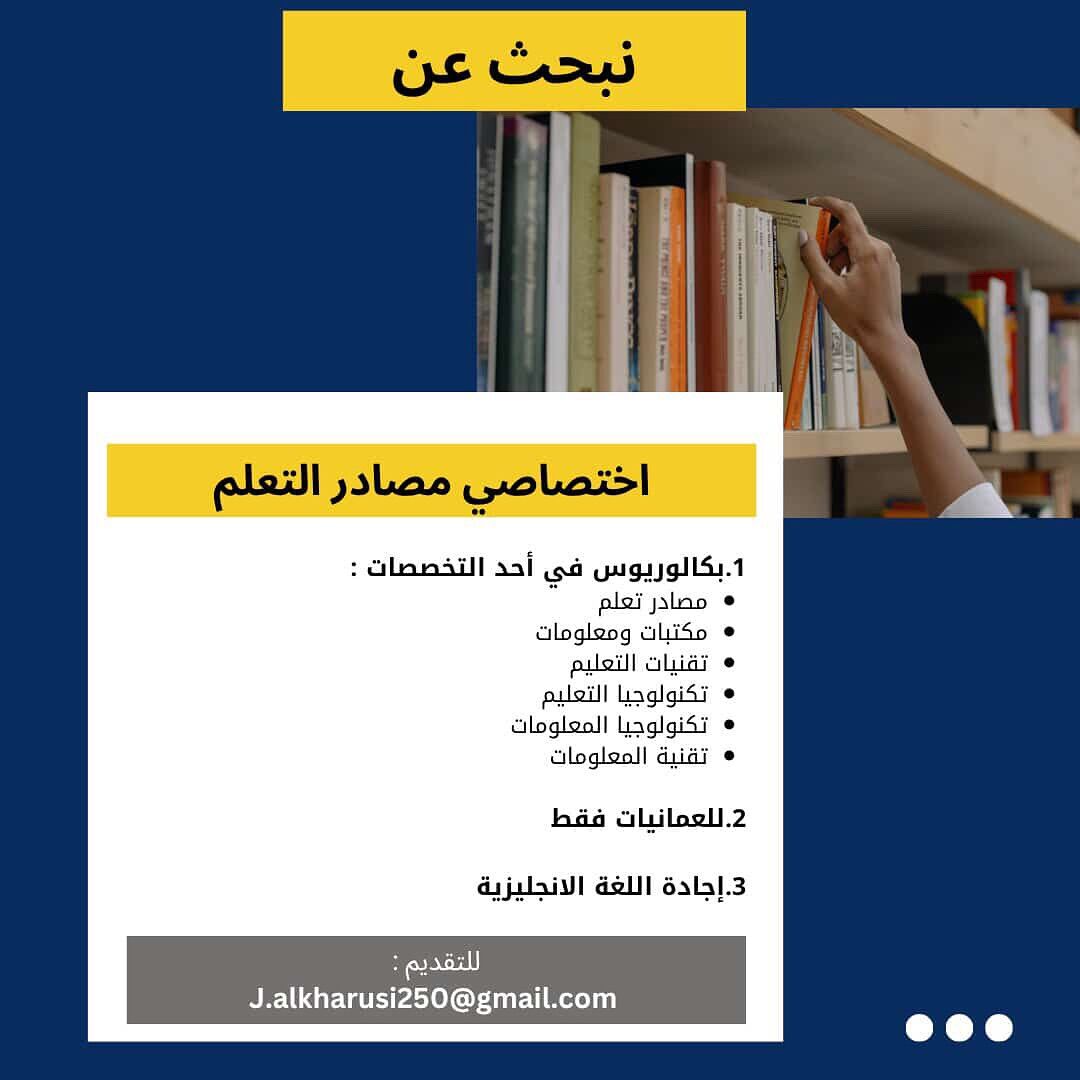 احدى المدارس الخاصة في الخوض - وظيفة شاغرة ( اختصاصي مصادر التعلم )