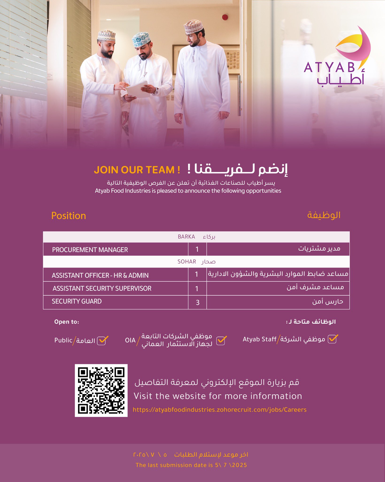 شركة أطياب للصناعات الغذائية - 6 وظائف شاغرة