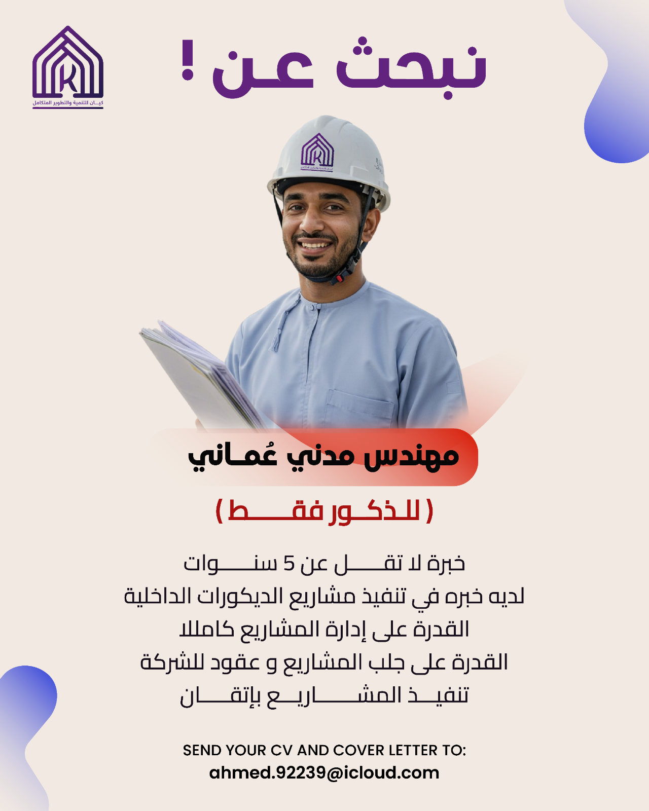 شركة كيان للتنمية والتطوير المتكامل - وظيفة شاغرة ( مهندس مدني عماني )