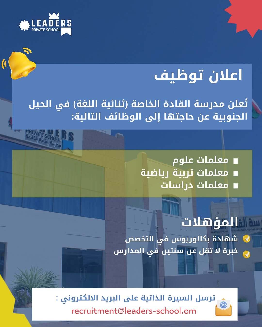 مدرسة القادة الخاصة في الحيل - وظائف تدريسية شاغرة ( معلمات )
