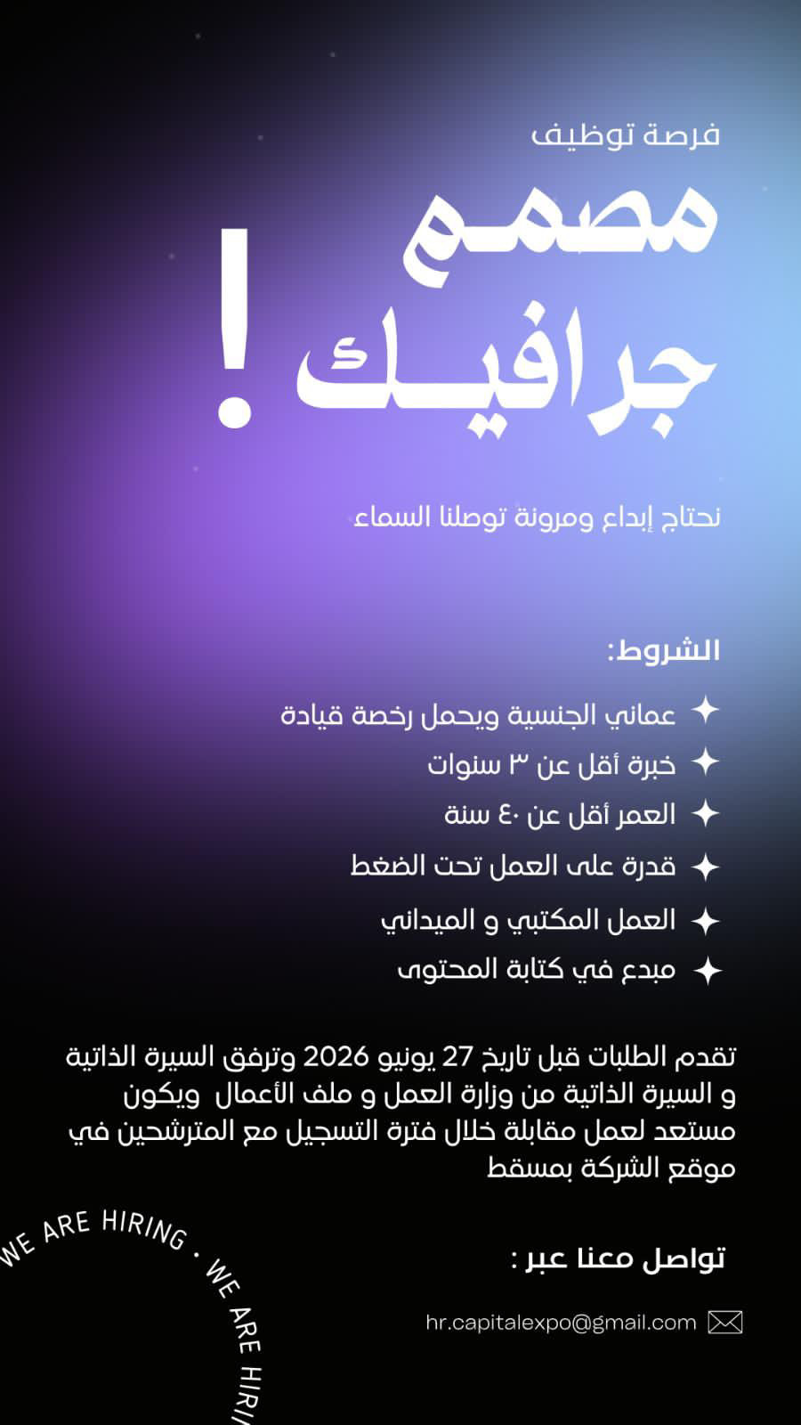 مركز العاصمة للمعارض الدولي - وظيفة شاغرة ( مصمم جرافيك )