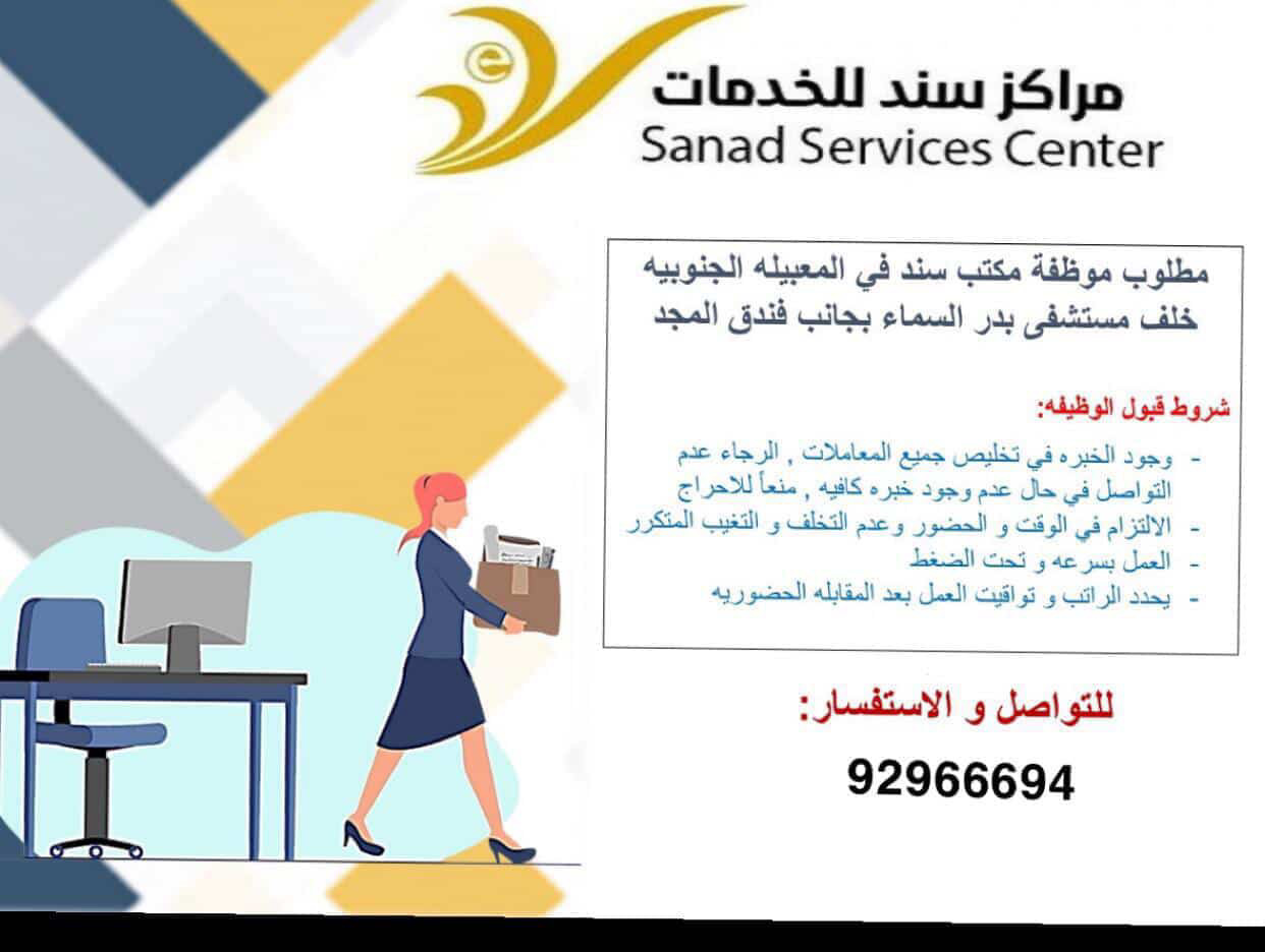 مكتب سند للخدمات في المعبيلة - وظيفة شاغرة ( موظفة )
