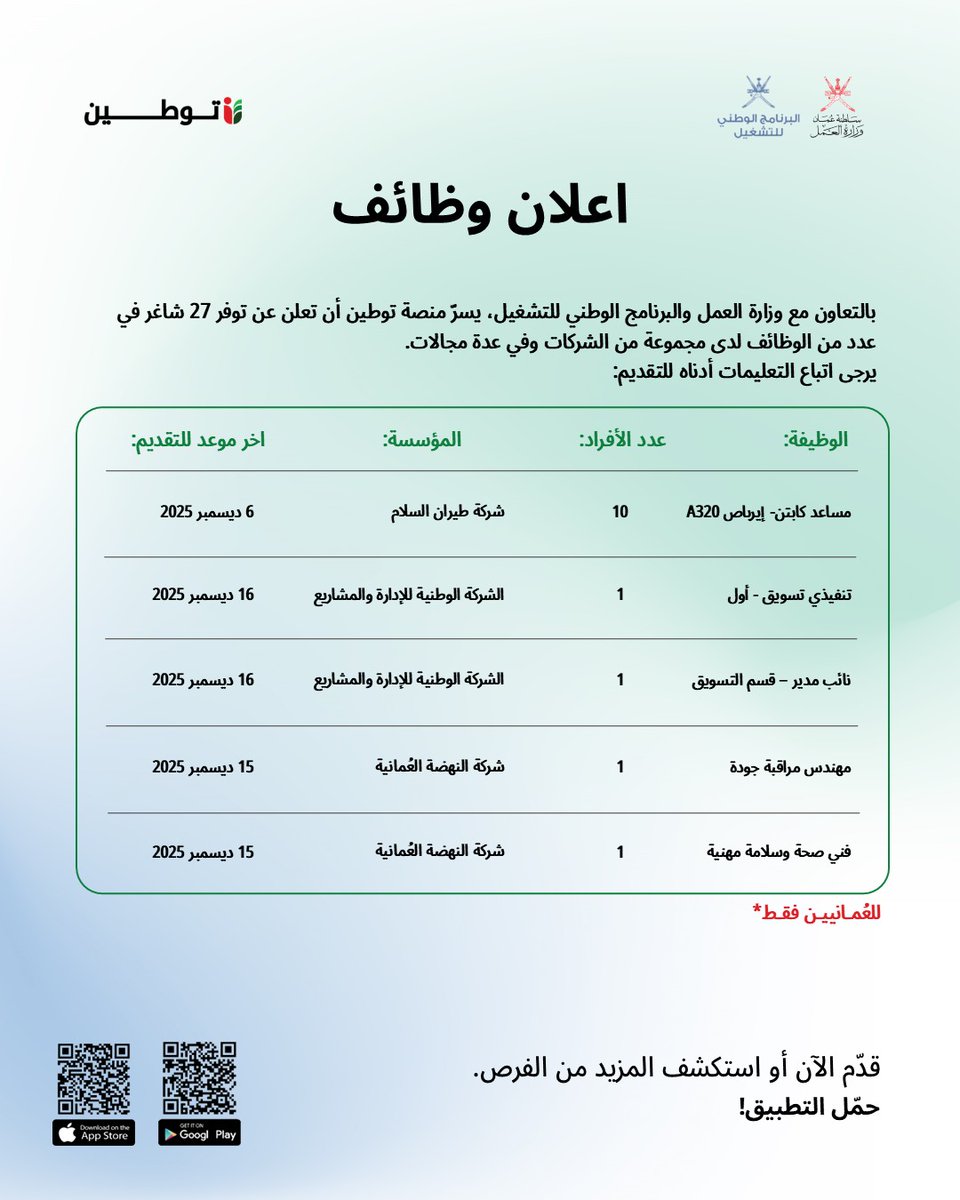 منصة توطين - 27 شاغر في عدد من الوظائف لدى مجموعة من الشركات وفي عدة مجالات