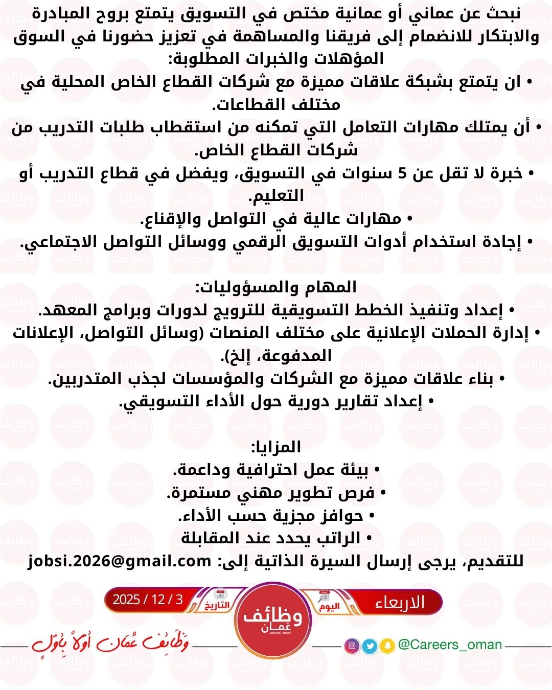 معهد تدريب فني في مسقط - وظيفة شاغرة ( تسويق )