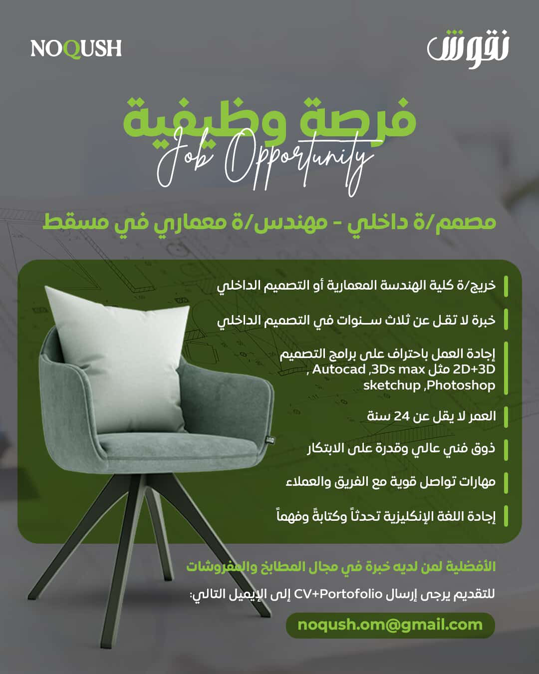 شركة نقوش في مسقط - وظيفة شاغرة ( مصصم/ة داخلي - مهندس/ة معماري )