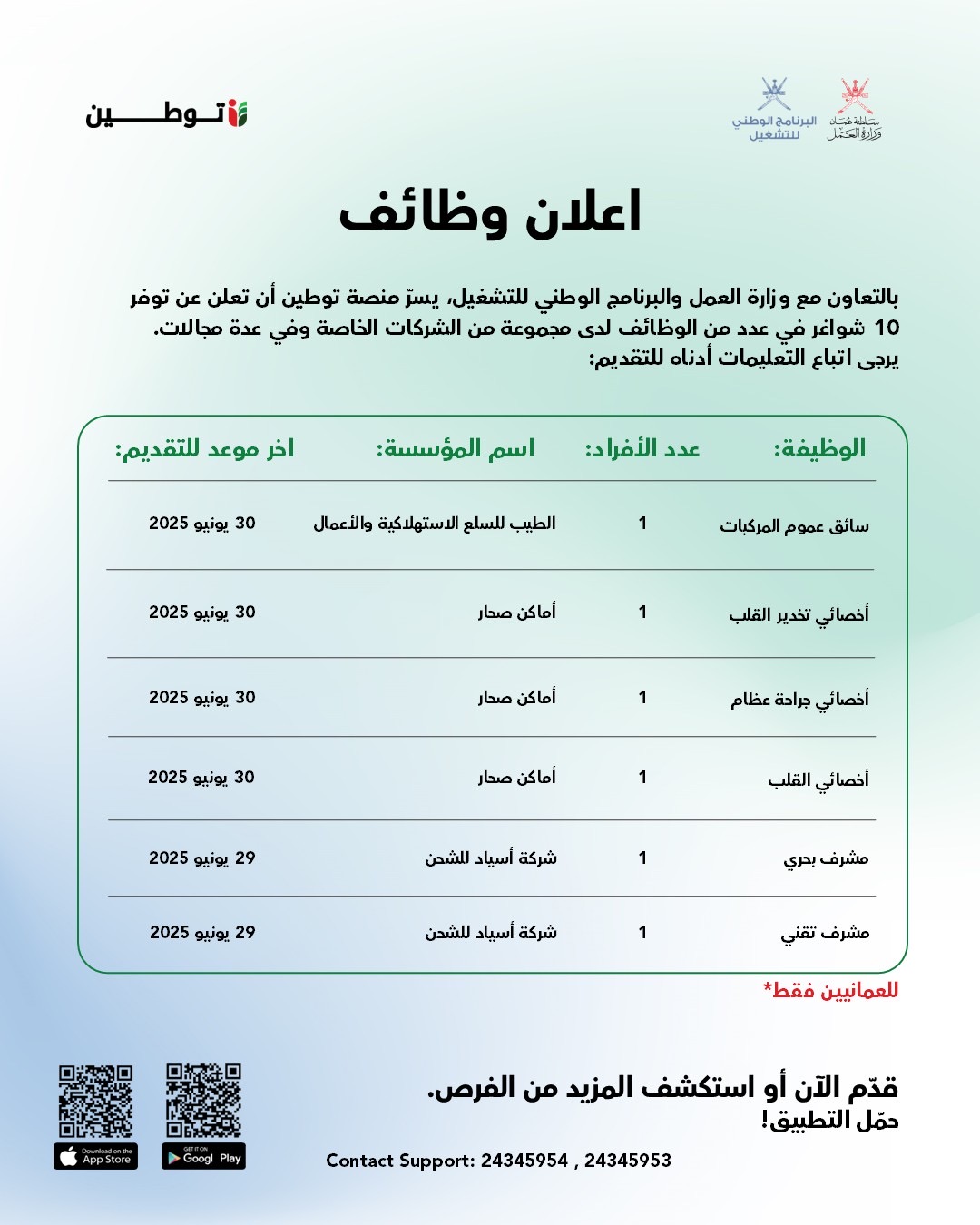 منصة توطين - 10 وظائف شاغرة + 4 فرصة تدريبية في مجموعة من الشركات الخاصة