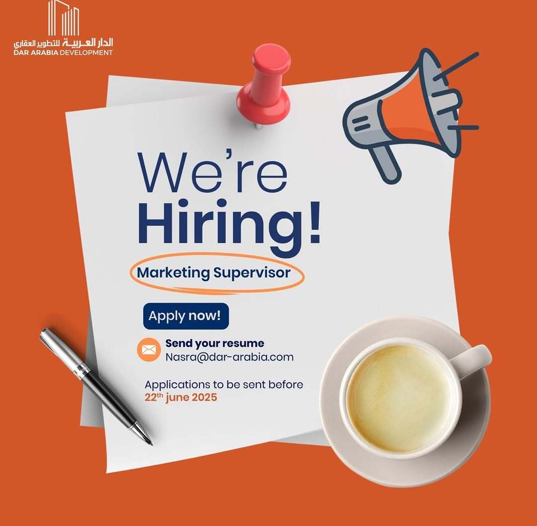 الدار العربية للتطوير العقاري - وظيفة شاغرة ( Marketing Supervisor )