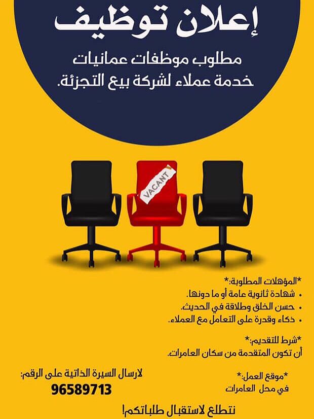شركة بيع بالتجزئة - فرص شاغرة ( موظفات عمانيات خدمة عملاء )