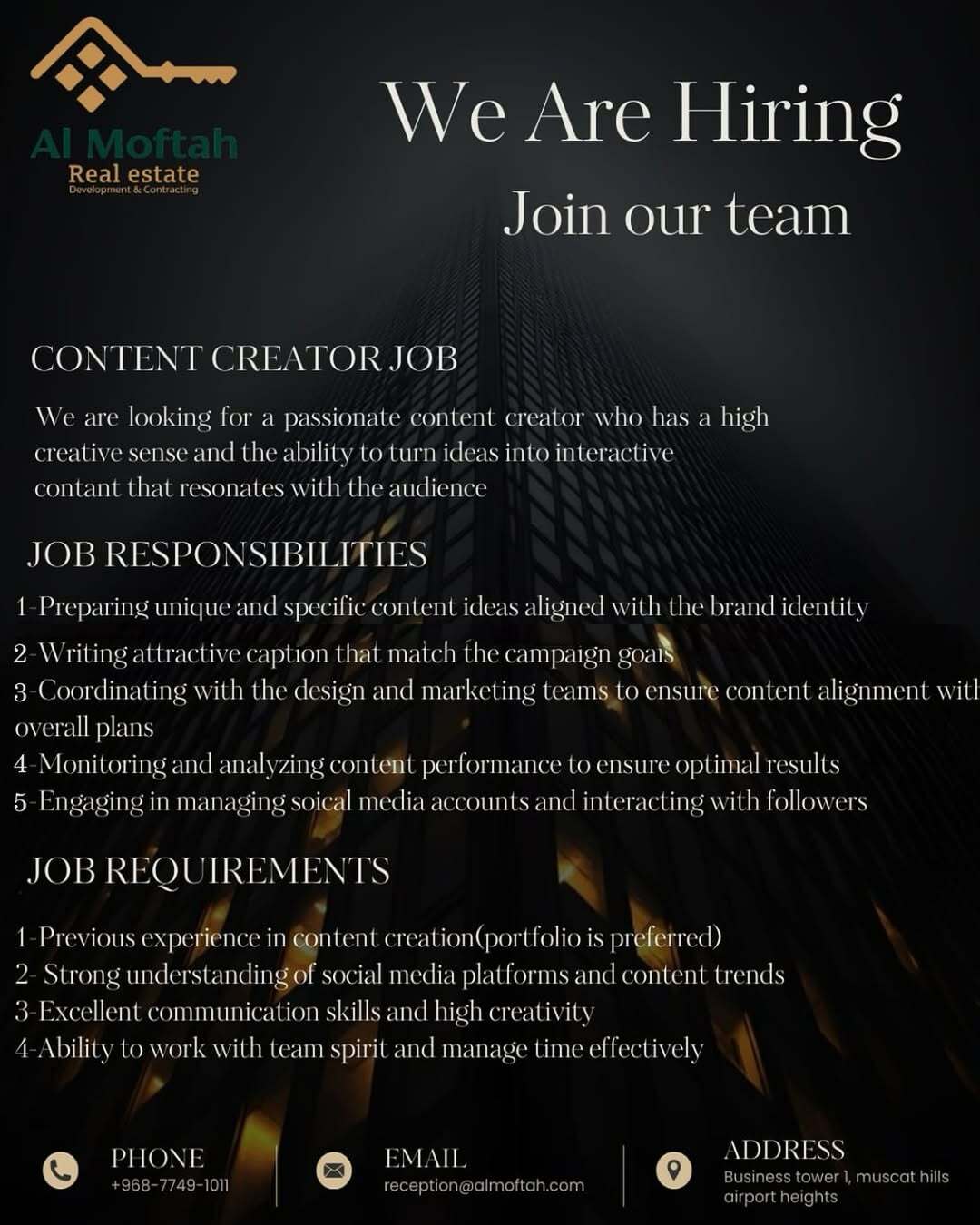 شركة المفتاح العقارية - وظيفة شاغرة ( صانع محتوى )