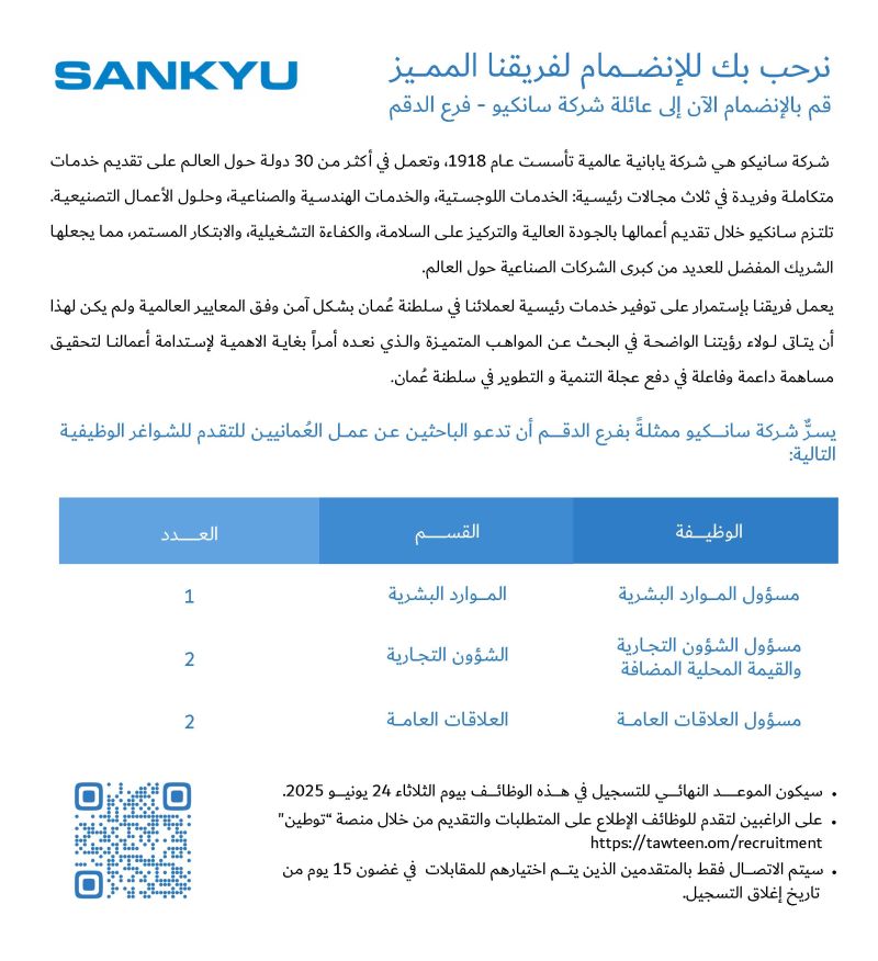 شركة سانيكو فرع الدقم - 5 فرص وظيفية