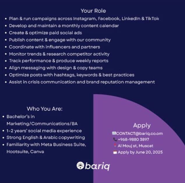 شركة بارق في مسقط - وظيفة شاغرة ( اخصائي تسويق )
