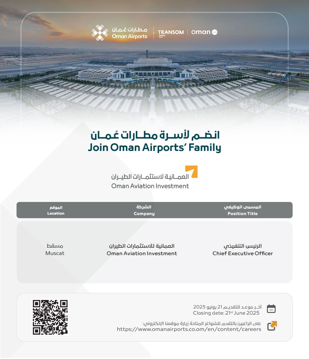 مطارات عمان - وظيفة شاغرة ( الرئيس التنفيذي )