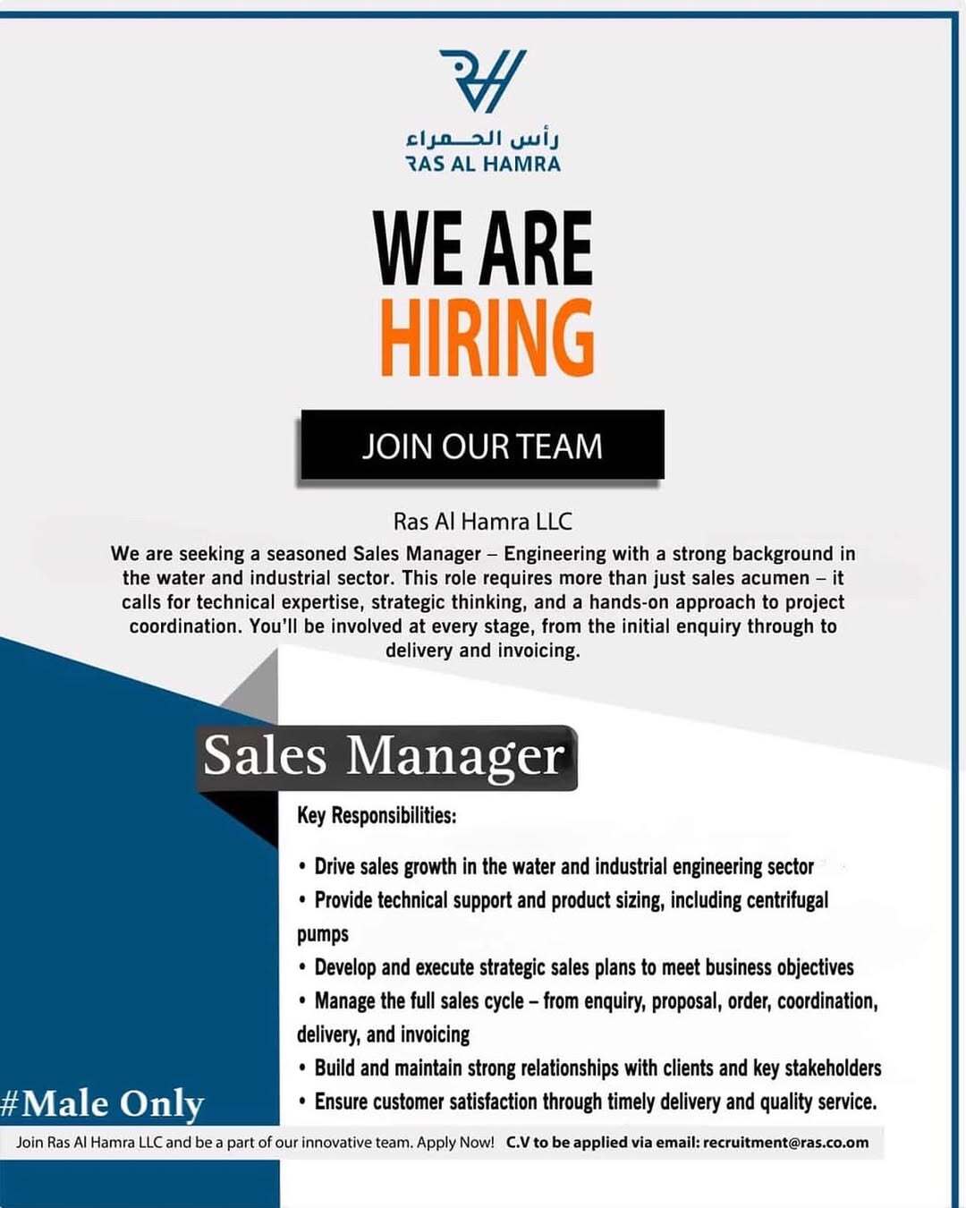 شركة راس الحمراء - وظيفة شاغرة ( Sales Manager )