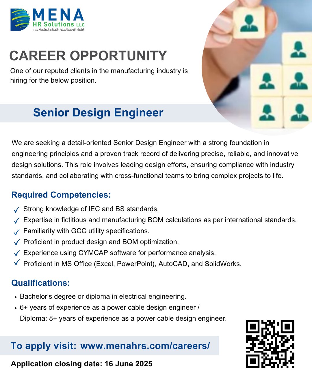 الشرق الأوسط لحلول الموارد البشرية - وظيفة شاغرة ( Senior Design Engineer )