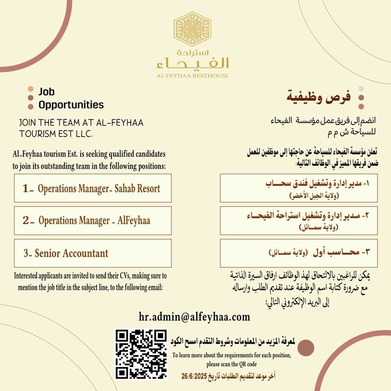 مؤسسة الفيحاء للسياحة - 3 وظائف شاغرة