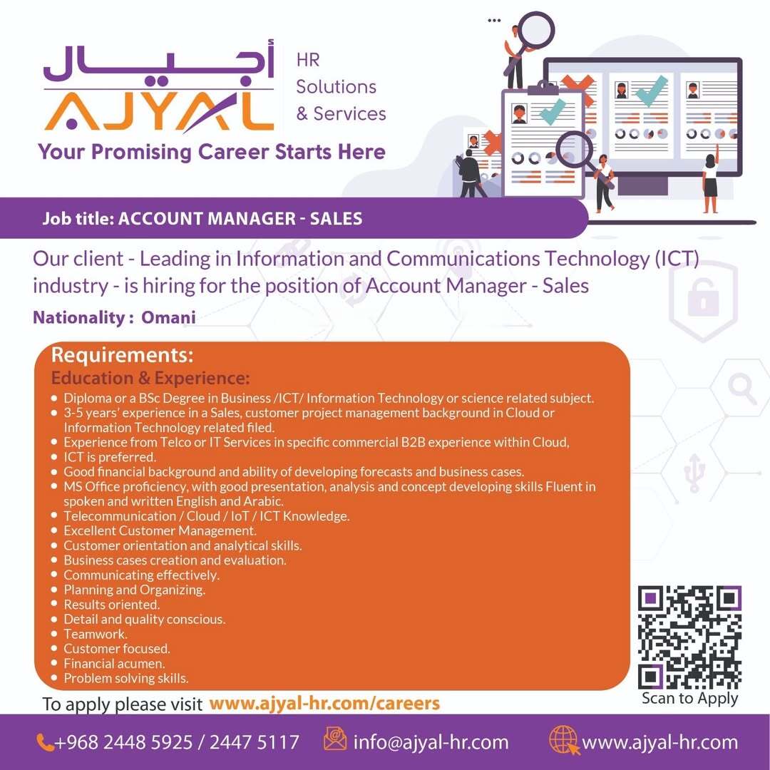 شركة أجيال لحلول الموارد البشرية - وظيفة شاغرة ( ACCOUNT MANAGER - SALES )