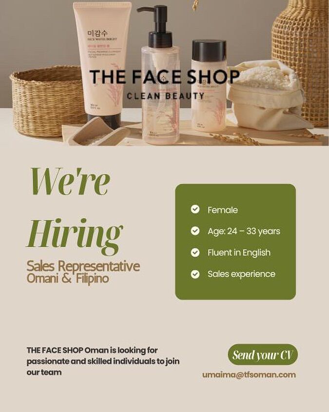 متجر ذا فيس شوب في مسقط - وظيفة شاغرة ( موظفة مبيعات )