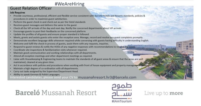 منتجع بارسيلو المصنعة - وظيفة شاغرة ( Guest Relation Officer )