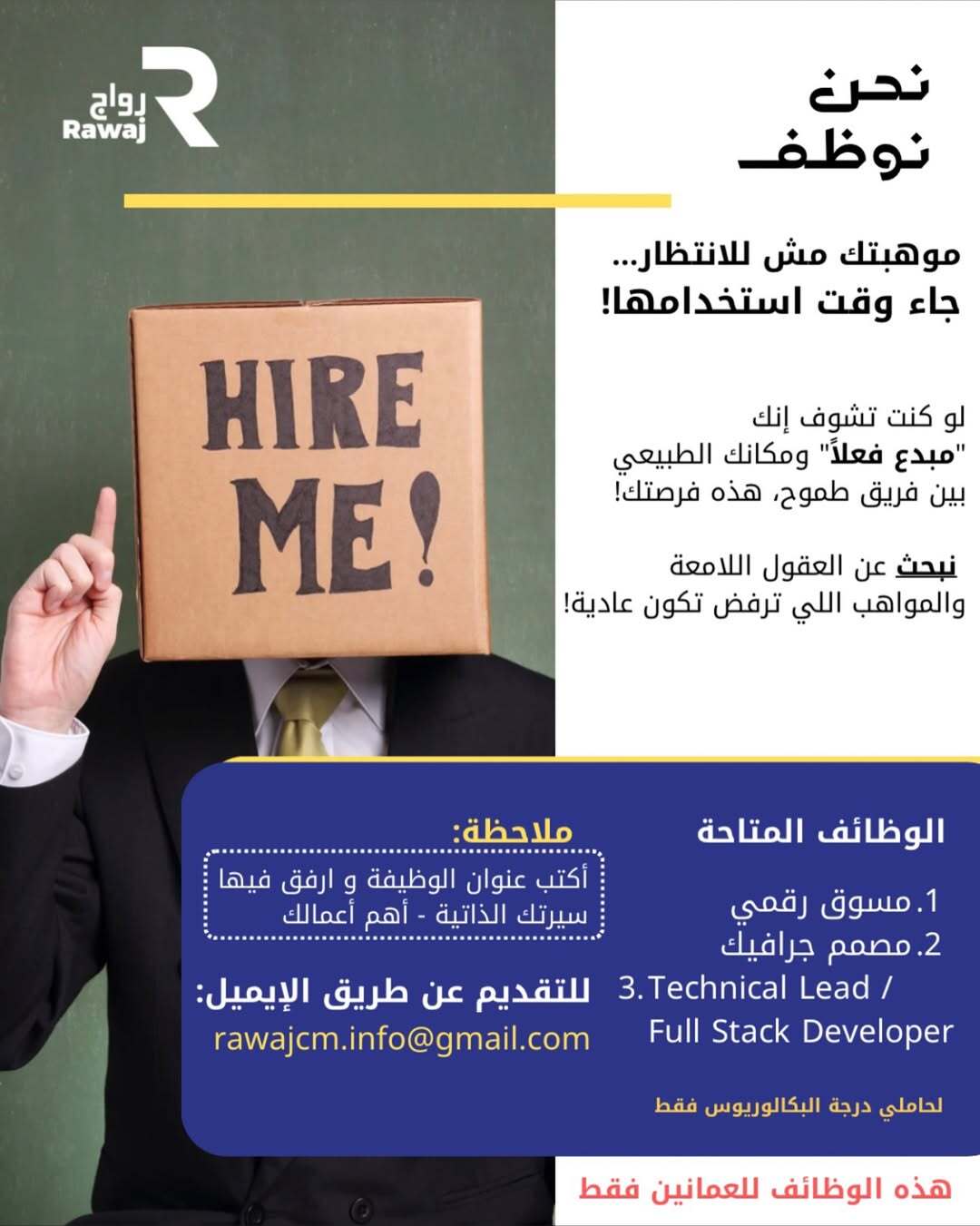 شركة رواج للتسويق في مسقط - وظيفتين شاغرتين ( مسوق رقمي + مصمم جرافيك )