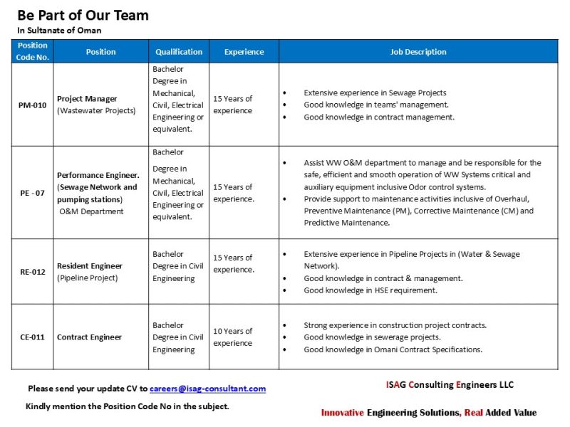 شركة ISAG للاستشارات الهندسية في مسقط - وظائف شاغرة