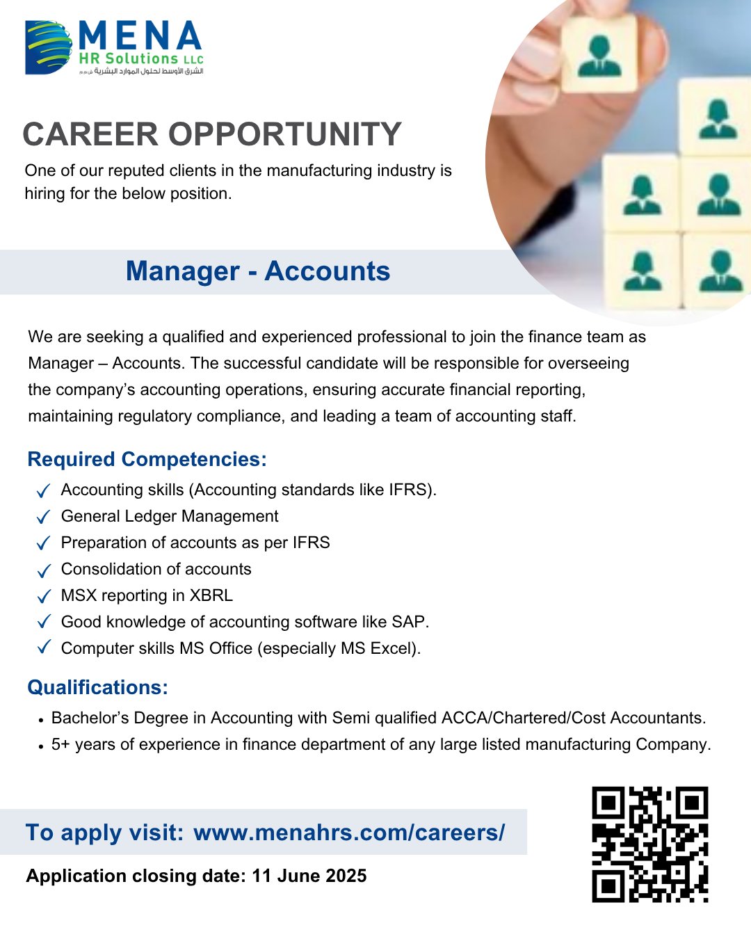 الشرق الأوسط لحلول الموارد البشرية - وظيفة شاغرة ( Manager - Accounts )