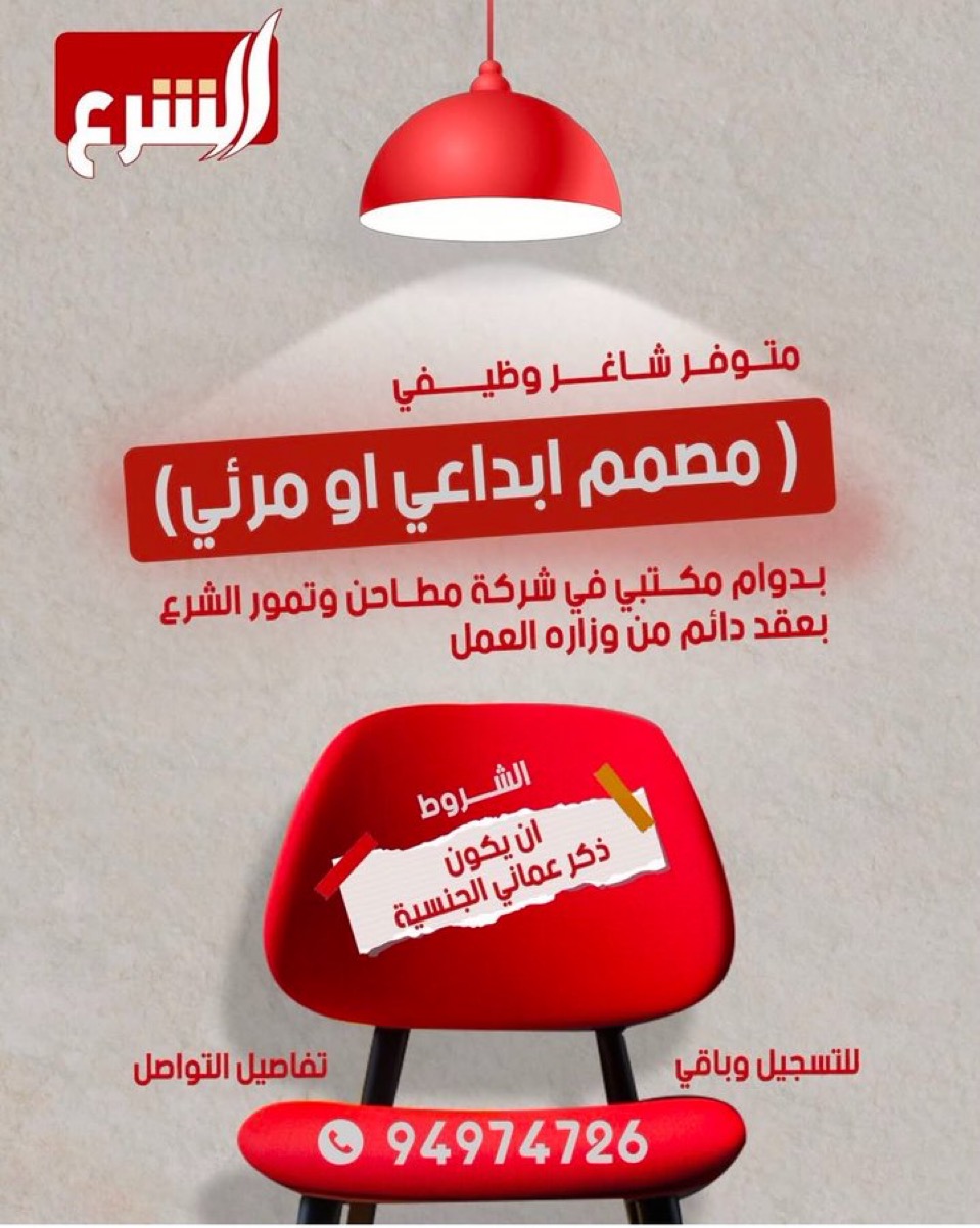 شركة مطاحن وتمور الشرع - وظيفة شاغرة ( مصمم إبداعي او مرئي )