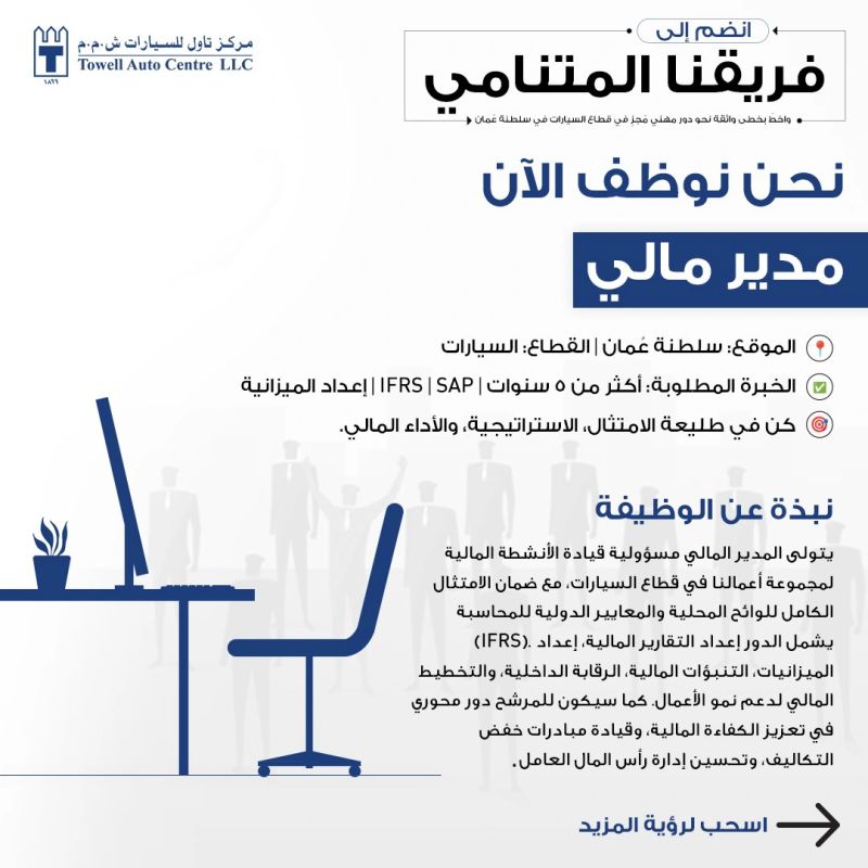 مركز تاول للسيارات - وظيفة شاغرة ( مدير مالي / FINANCIAL CONTROLLER )