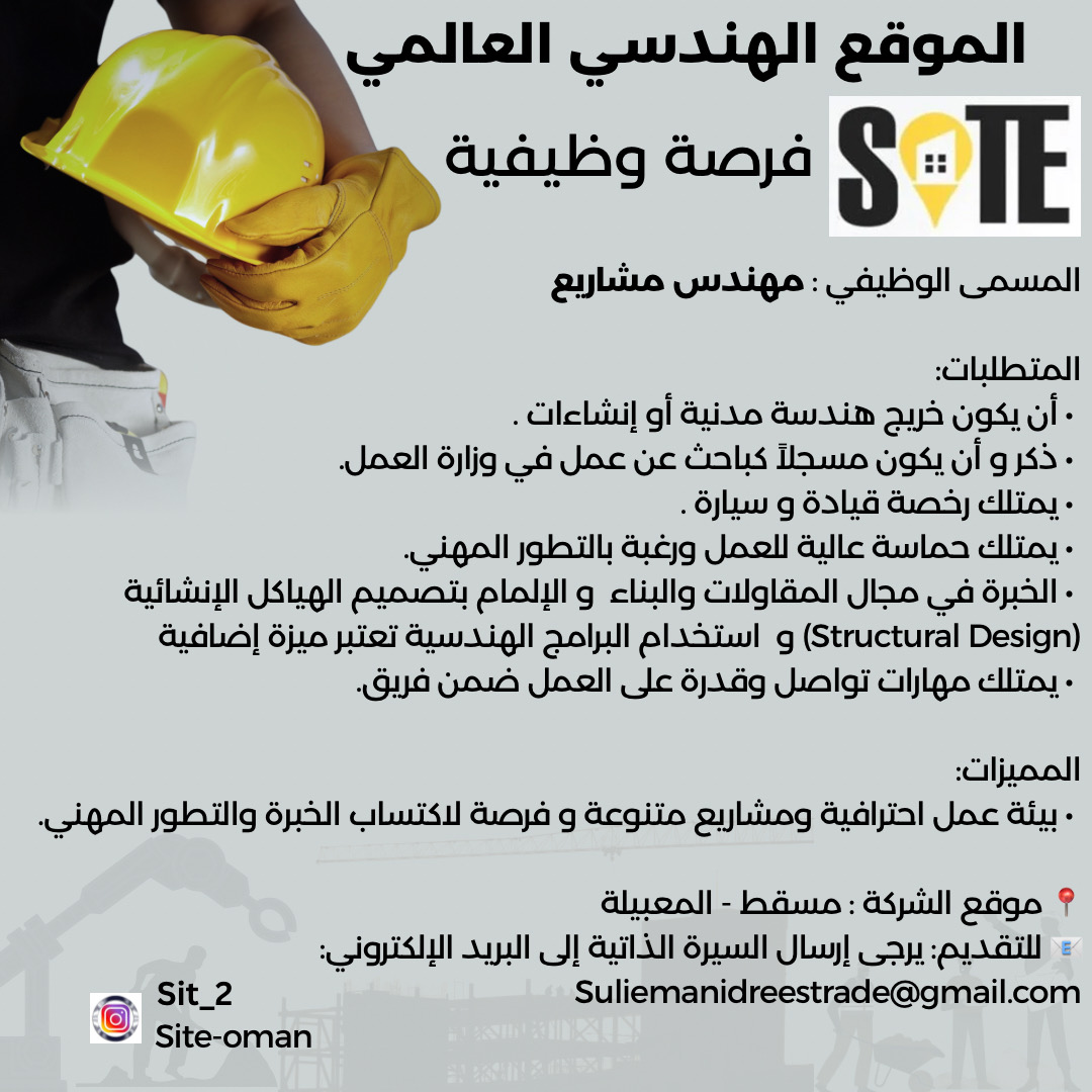 الموقع للاستشارات الهندسية في المعبيلة - وظيفة شاغرة ( مهندس مشاريع )