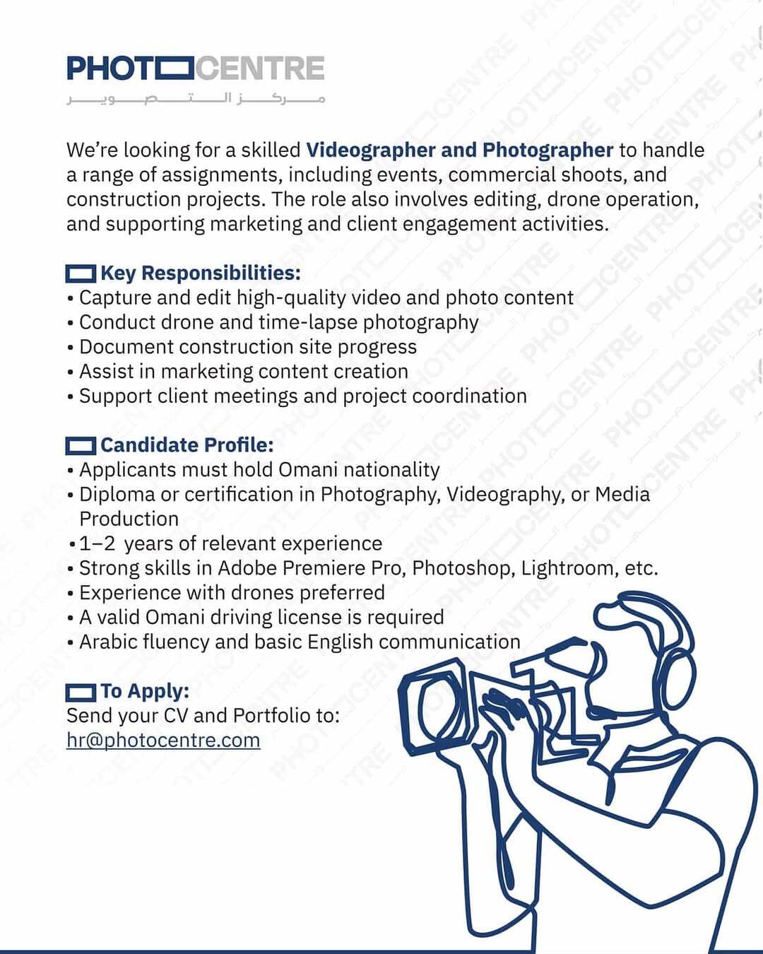 مركز التصوير في مسقط - وظيفة شاغرة ( Videographer and Photographer )