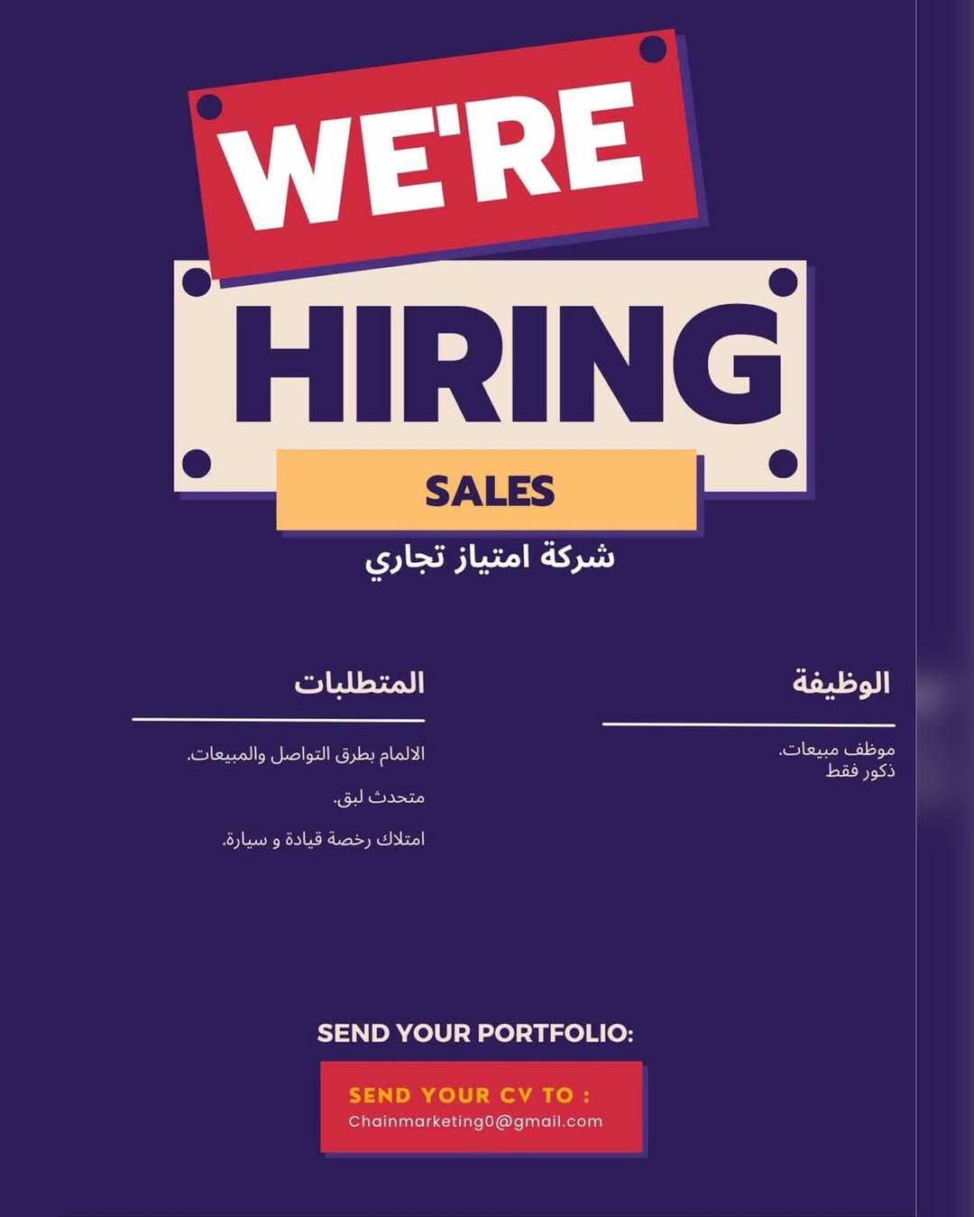 شركة امتياز تجاري - وظيفة شاغرة ( موظف مبيعات )