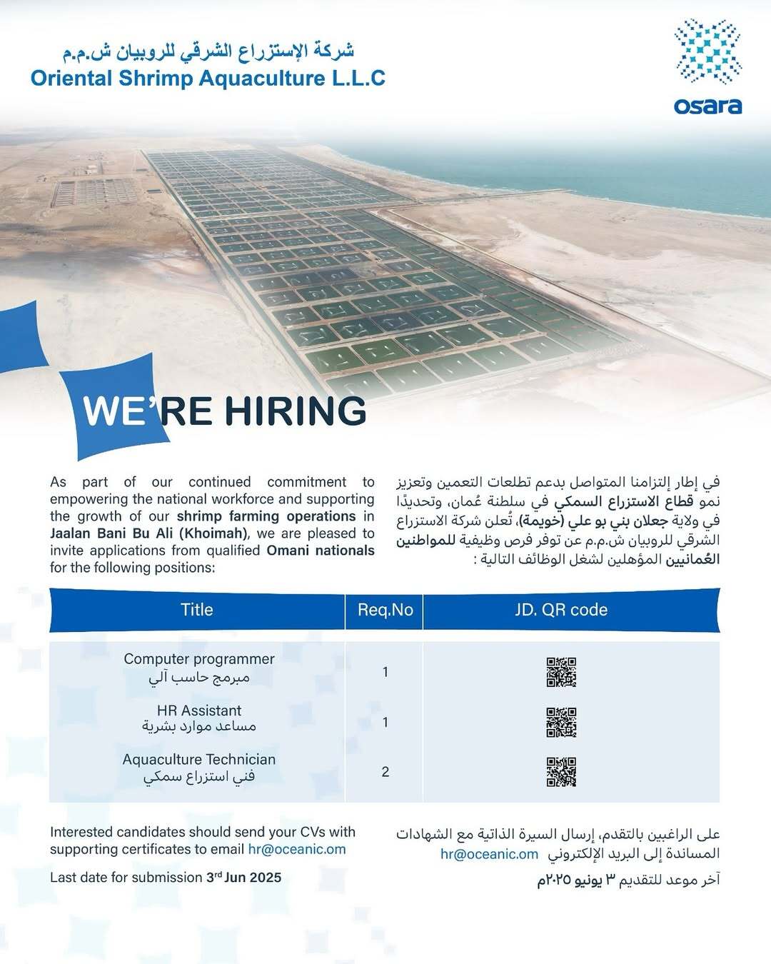 شركة الإستزراع الشرقي للروبيان - 4 وظائف شاغرة