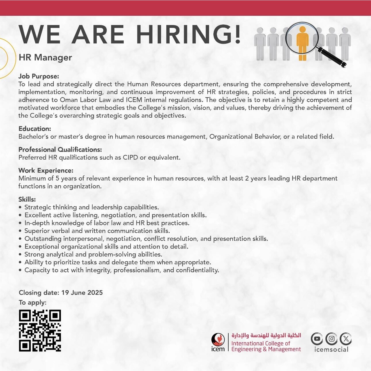 الكلية الدولية للهندسة والإدارة - وظيفة شاغرة ( HR Manager )