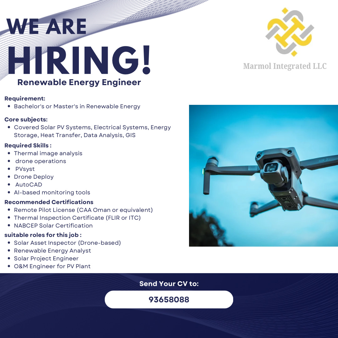 شركة مرمول المتكاملة في غلا - وظيفة شاغرة ( Renewable Energy Engineer )
