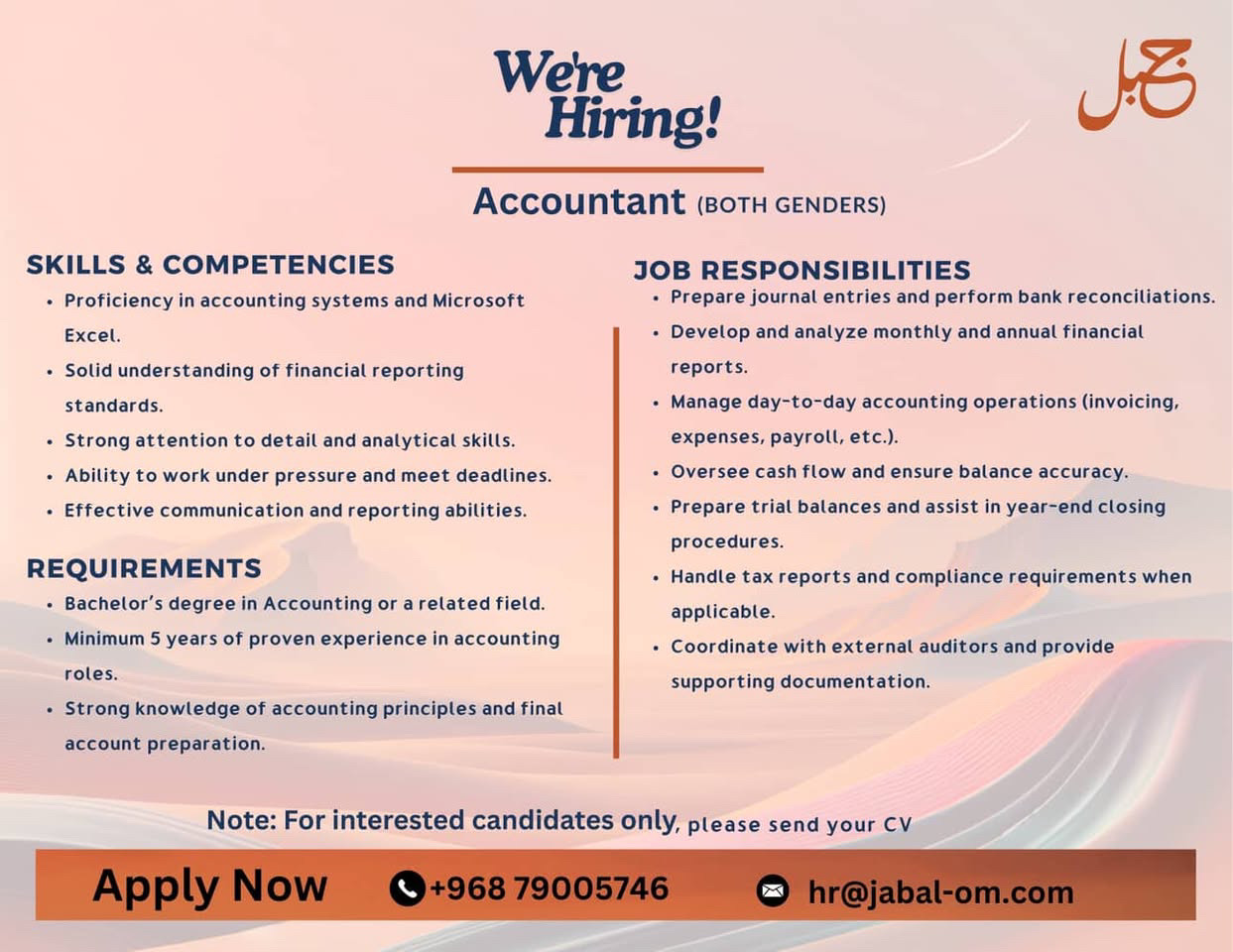 شركة جبل العقارية في الخوض - وظيفة شاغرة ( محاسب )