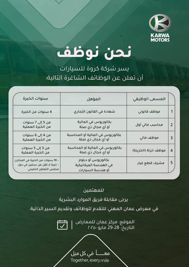 شركة كروة للسيارات - الوظائف المعلنة لمعرض عمان المهني