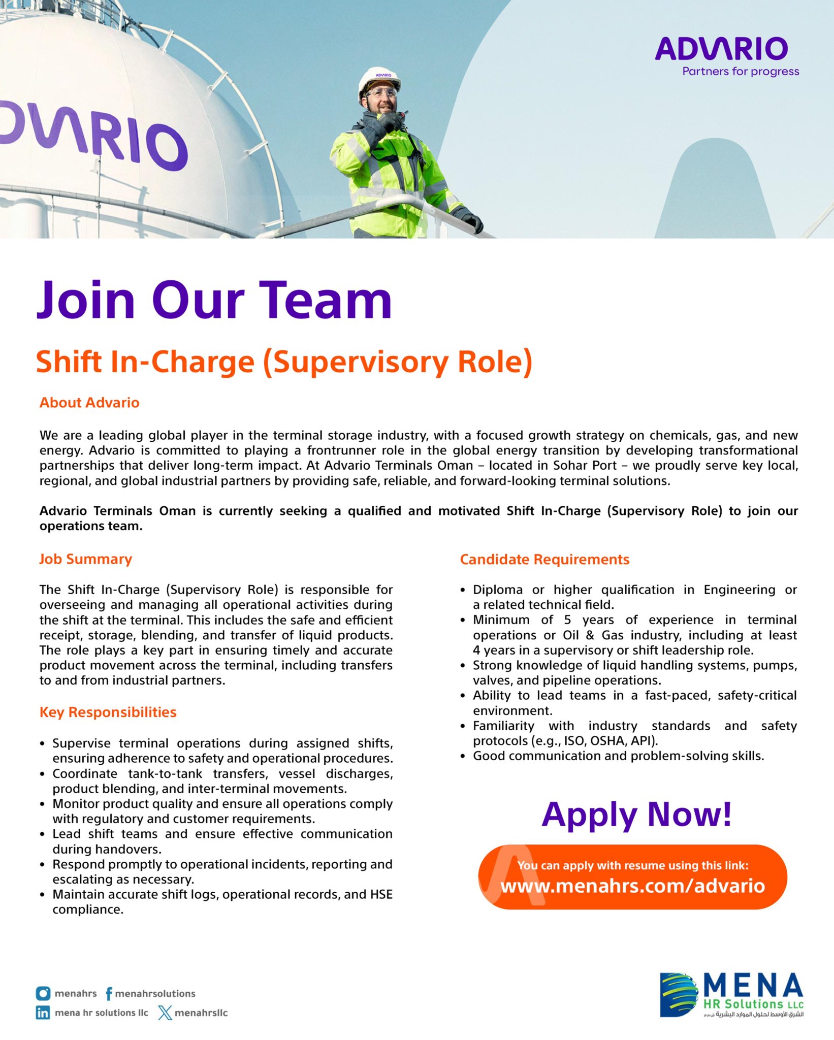 شركة أدفاريو - وظيفة شاغرة ( Shift In-Charge )