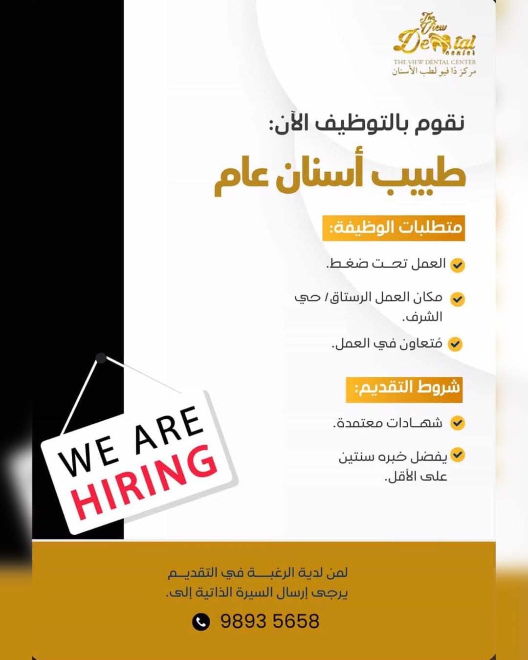 مركز ذا فيو لطب الاسنان في الرستاق - وظيفة شاغرة ( طبيب أسنان عام )
