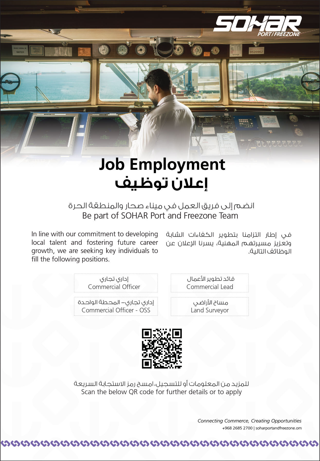ميناء صحار والمنطقة الحرة - 4 وظائف شاغرة