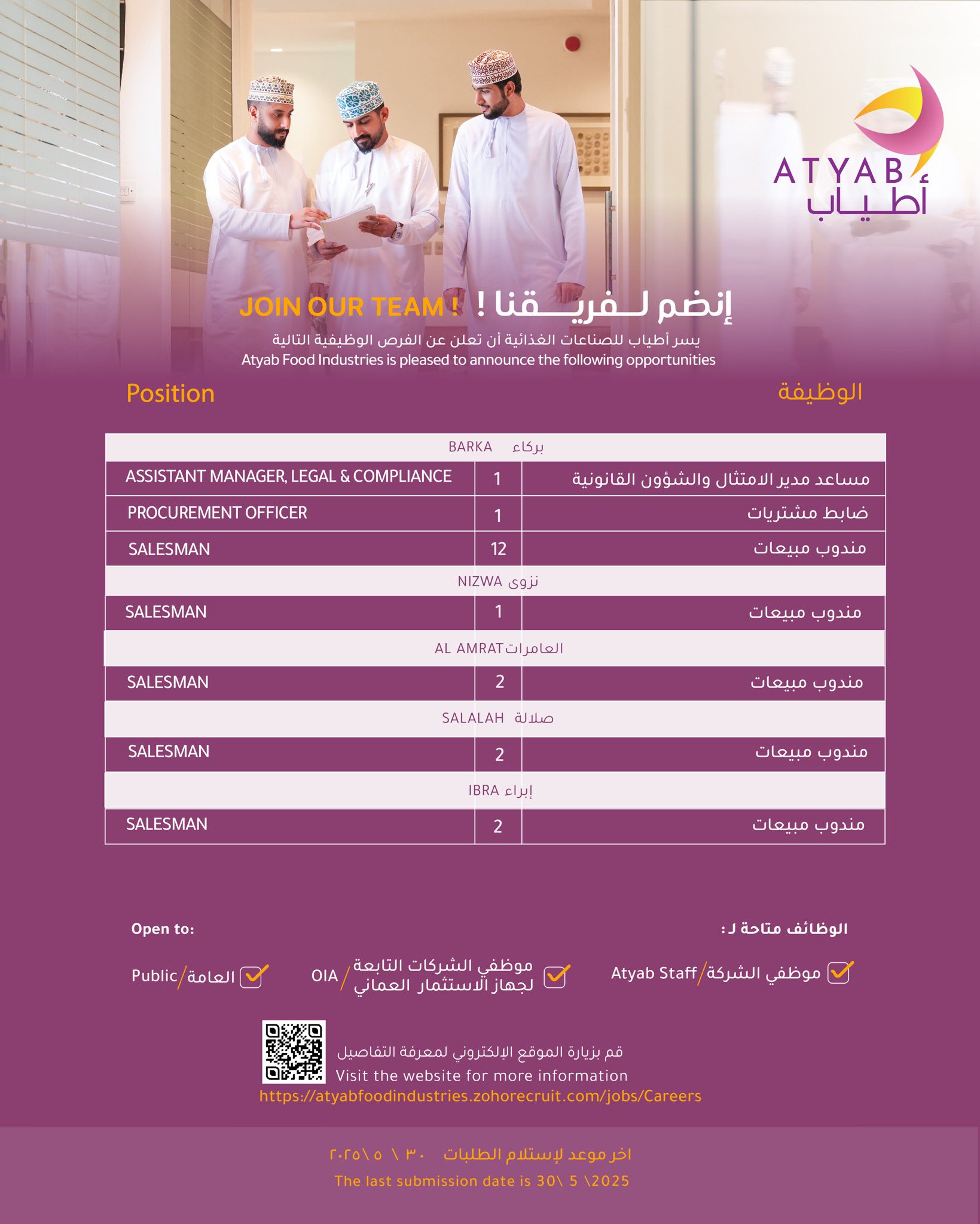 شركة أطياب للصناعات الغذائية - 21 وظيفة شاغرة