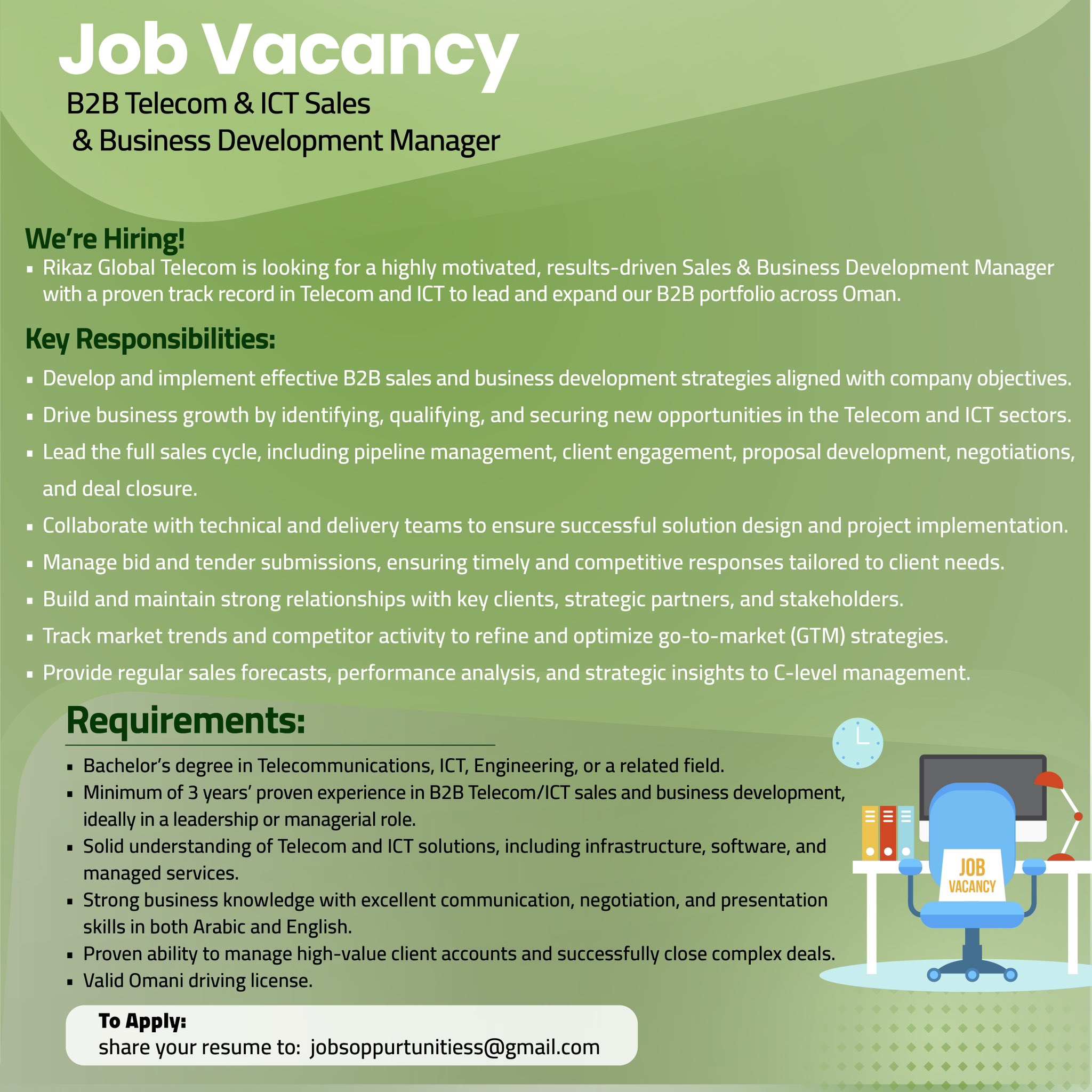 شركة ركاز جلوبال تيليكوم - وظيفة شاغرة ( B2B Telecom & ICT Sales & Business Development Manager )