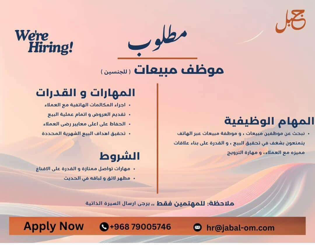 شركة جبل العقارية في الخوض - وظيفة شاغرة ( موظف مبيعات )