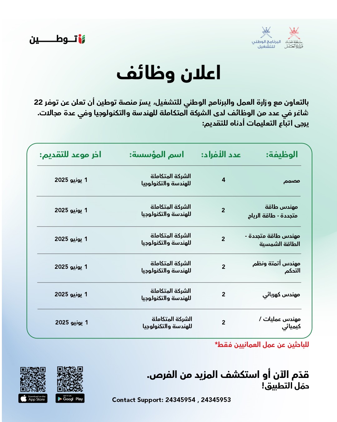 منصة توطين - 22 وظيفة شاغرة لدى الشركة المتكاملة للهندسة والتكنولوجيا وفي عدة مجالات