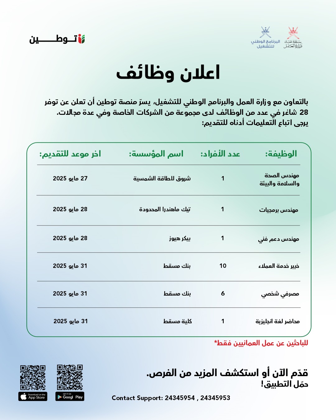 منصة توطين - 28 وظيفة شاغرة لدى مجموعة من الشركات الخاصة وفي عدة مجالات