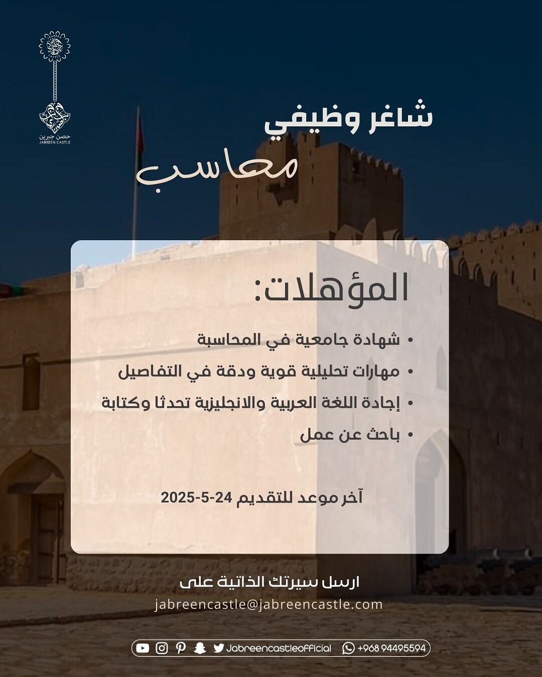 حصن جبرين - وظيفة شاغرة ( محاسب )