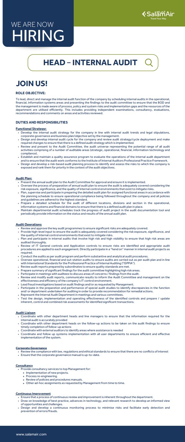 طيران السلام - وظيفة شاغرة ( HEAD - INTERNAL AUDIT )