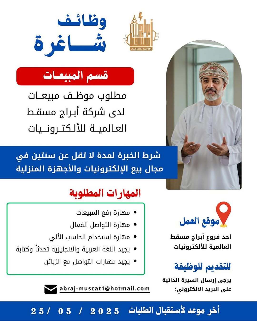 شركة أبراج مسقط العالمية للألكترونيات - وظيفة شاغرة ( مبيعات )