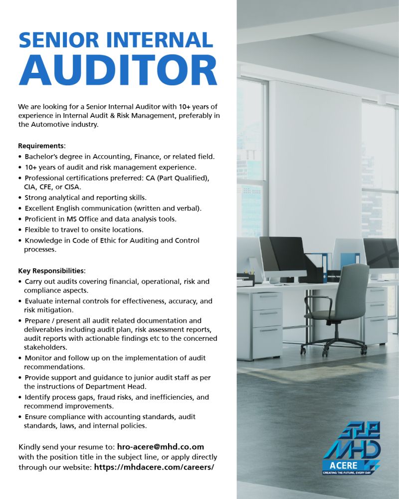 شركة محسن حيدر درويش لقسم السيارات ومعدات البناء والطاقة المتجددة - وظيفة شاغرة ( SENIOR INTERNAL AUDITOR )