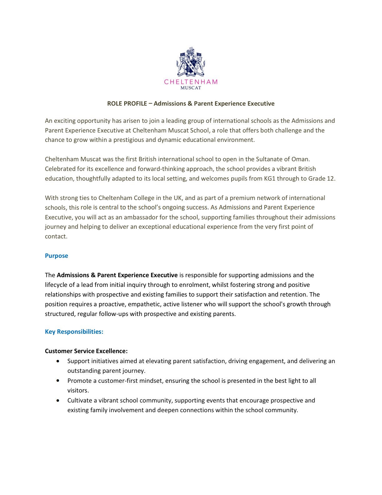 مدرسة شلتنهام مسقط - وظيفة شاغرة ( Admissions & Parent Experience Executive )
